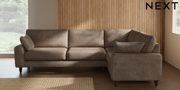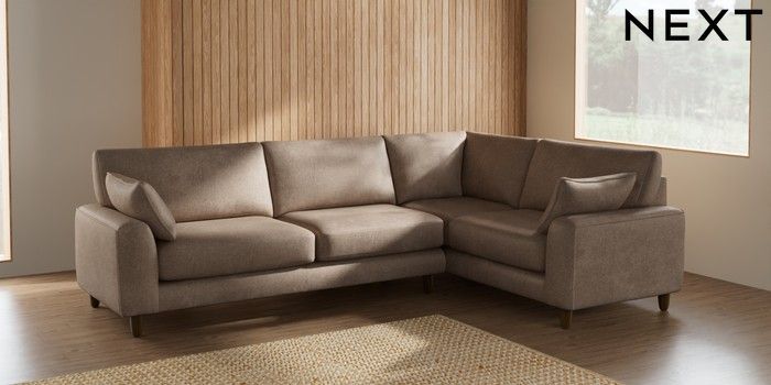 7.2.10 Campbell Large Corner Sofa - Right Hand Plush Chenille Mid Natural High Leg - Mid | Made Click here to use our website with more accessibility support, for example screen readers