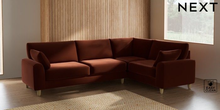 7.2.10 Campbell Large Corner Sofa - Right Hand Plush Velvet Easy Clean Ginger Orange High Leg - Light | Made Click here to use our website with more accessibility support, for example screen readers