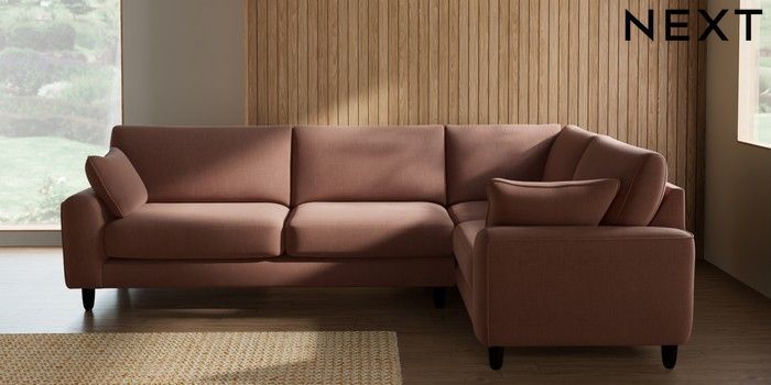 7.2.10 Campbell Large Corner Sofa - Right Hand Relaxed Linen Look Light Rust Brown High Leg - Dark | Made Click here to use our website with more accessibility support, for example screen readers