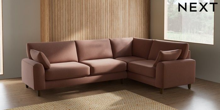 7.2.10 Campbell Large Corner Sofa - Right Hand Relaxed Linen Look Light Rust Brown High Leg - Mid | Made Click here to use our website with more accessibility support, for example screen readers
