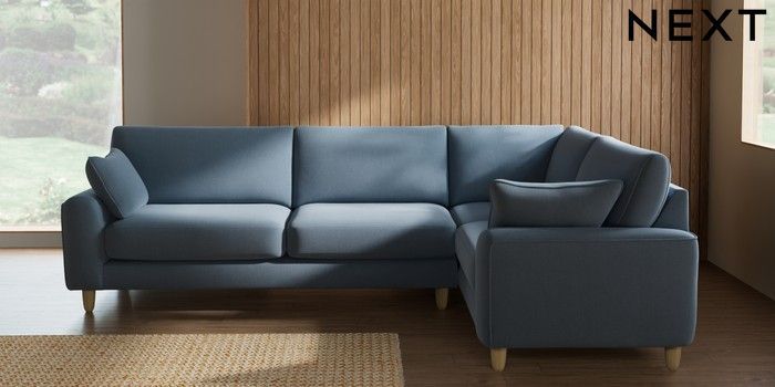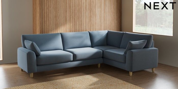 7.2.10 Campbell Large Corner Sofa - Right Hand Relaxed Linen Look Mid Blue High Leg - Light | Made Click here to use our website with more accessibility support, for example screen readers