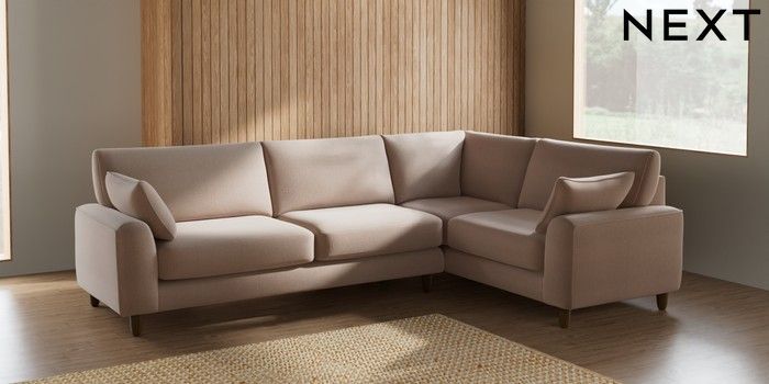 7.2.10 Campbell Large Corner Sofa - Right Hand Relaxed Linen Look Mid Natural High Leg - Mid | Made Click here to use our website with more accessibility support, for example screen readers