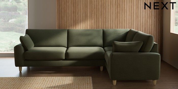 7.2.10 Campbell Large Corner Sofa - Right Hand Ripple Chenille Mid Moss Green High Leg - Light | Made Click here to use our website with more accessibility support, for example screen readers