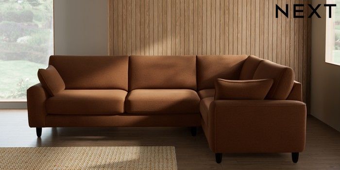 7.2.10 Campbell Large Corner Sofa - Right Hand Ripple Chenille Mid Rust Brown High Leg - Dark | Made Click here to use our website with more accessibility support, for example screen readers