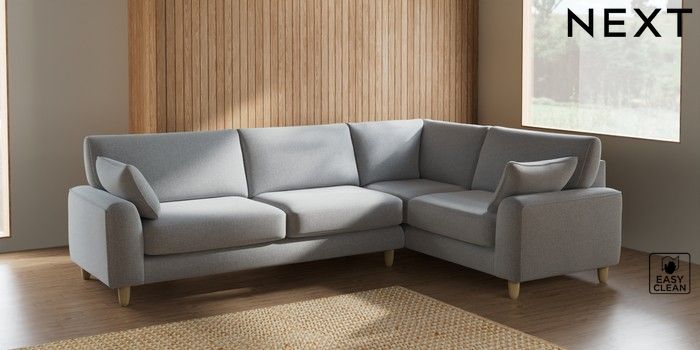 7.2.10 Campbell Large Corner Sofa - Right Hand Tweedy Blend Easy Clean Light Silver Grey High Leg - Light | Made Click here to use our website with more accessibility support, for example screen readers