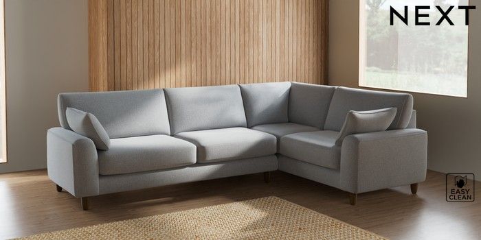 7.2.10 Campbell Large Corner Sofa - Right Hand Tweedy Blend Easy Clean Light Silver Grey High Leg - Mid | Made Click here to use our website with more accessibility support, for example screen readers