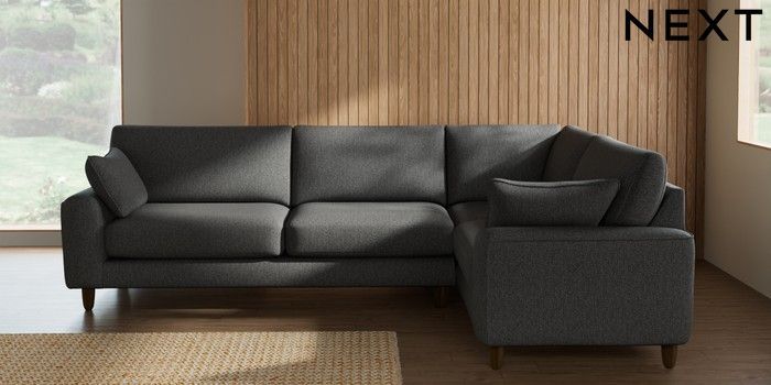 7.2.10 Campbell Large Corner Sofa - Right Hand Tweedy Chenille Dark Grey High Leg - Mid | Made Click here to use our website with more accessibility support, for example screen readers