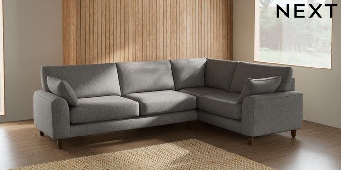 7.2.10 Campbell Large Corner Sofa - Right Hand Tweedy Chenille Mid Grey High Leg - Mid | Made Click here to use our website with more accessibility support, for example screen readers