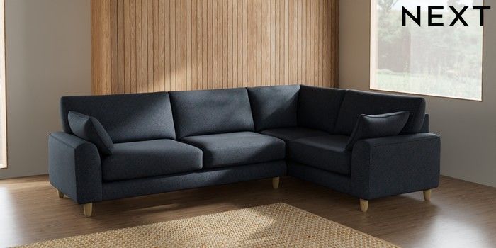 7.2.10 Campbell Large Corner Sofa - Right Hand Tweedy Chenille Navy Blue High Leg - Light | Made Click here to use our website with more accessibility support, for example screen readers