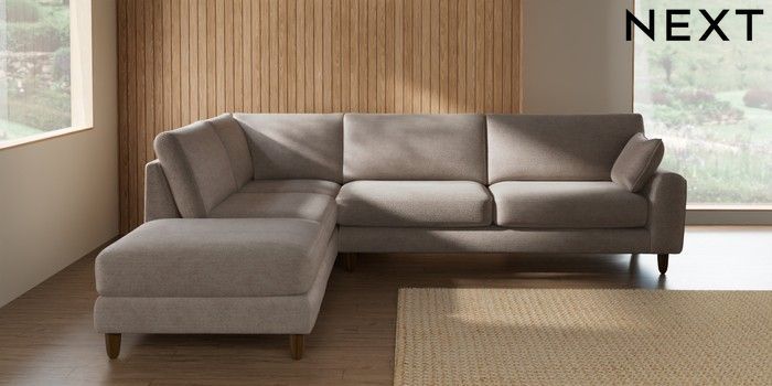 7.2.10 Campbell Large Open End Corner Chaise - Left Hand Boucle Chenille Light Natural High Leg - Mid | Made Click here to use our website with more accessibility support, for example screen readers