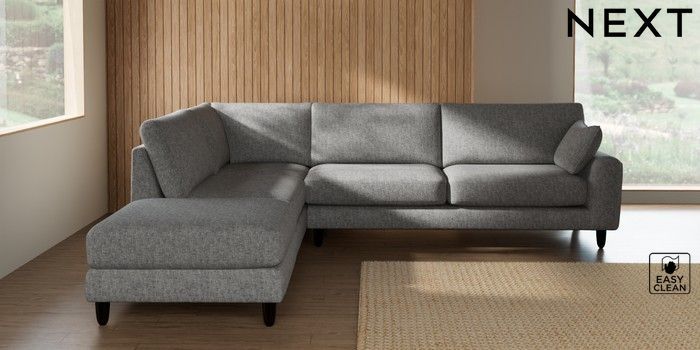 7.2.10 Campbell Large Open End Corner Chaise - Left Hand Chunky Boucle Easy Clean Light Grey High Leg - Dark | Made Click here to use our website with more accessibility support, for example screen readers