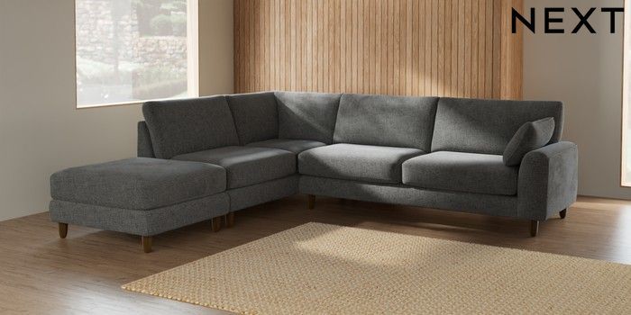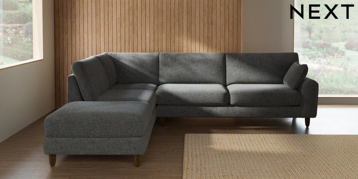7.2.10 Campbell Large Open End Corner Chaise - Left Hand Chunky Chenille Dark Grey High Leg - Mid | Made Click here to use our website with more accessibility support, for example screen readers
