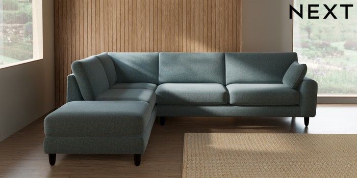 7.2.10 Campbell Large Open End Corner Chaise - Left Hand Chunky Marl Mid Blue High Leg - Dark | Made Click here to use our website with more accessibility support, for example screen readers