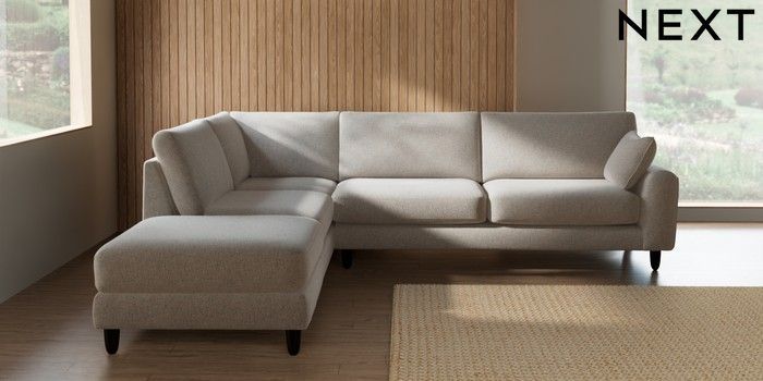 7.2.10 Campbell Large Open End Corner Chaise - Left Hand Chunky Marl Oyster High Leg - Dark | Made Click here to use our website with more accessibility support, for example screen readers