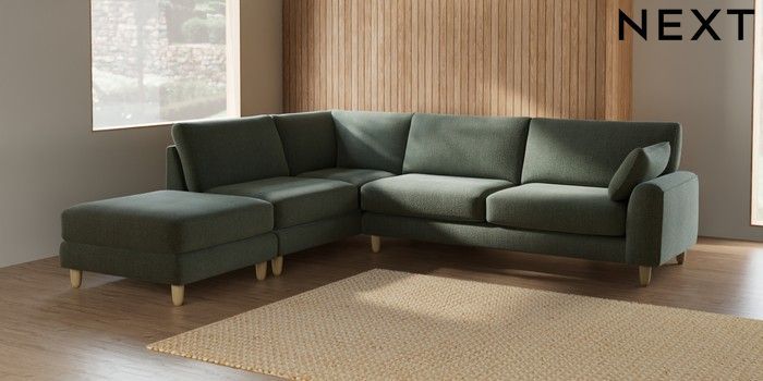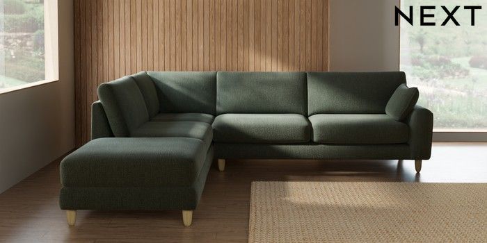 7.2.10 Campbell Large Open End Corner Chaise - Left Hand Chunky Texture Mid Forest Green High Leg - Light | Made Click here to use our website with more accessibility support, for example screen readers