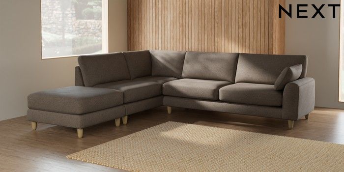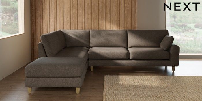 7.2.10 Campbell Large Open End Corner Chaise - Left Hand Chunky Weave Dark Natural High Leg - Light | Made Click here to use our website with more accessibility support, for example screen readers