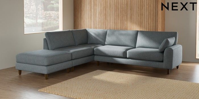 7.2.10 Campbell Large Open End Corner Chaise - Left Hand Chunky Weave Mid Blue High Leg - Mid | Made Click here to use our website with more accessibility support, for example screen readers