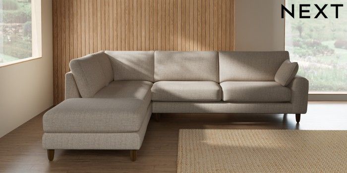 7.2.10 Campbell Large Open End Corner Chaise - Left Hand Chunky Weave Mid Natural High Leg - Mid | Made Click here to use our website with more accessibility support, for example screen readers