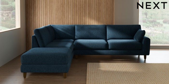 7.2.10 Campbell Large Open End Corner Chaise - Left Hand Cotswold Chenille Dark Blue High Leg - Mid | Made Click here to use our website with more accessibility support, for example screen readers