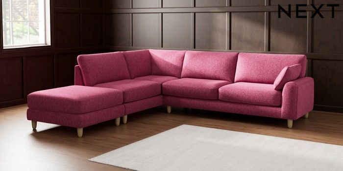 7.2.10 Campbell Large Open End Corner Chaise - Left Hand Cotswold Chenille Dark Raspberry Pink High Leg - Light | Made Click here to use our website with more accessibility support, for example screen readers