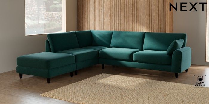 7.2.10 Campbell Large Open End Corner Chaise - Left Hand Fine Chenille Easy Clean Dark Juniper Green High Leg - Dark | Made Click here to use our website with more accessibility support, for example screen readers