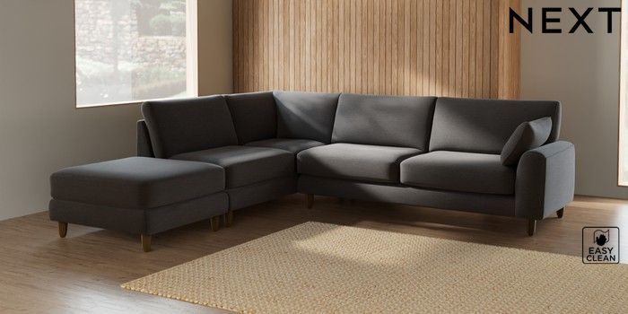 7.2.10 Campbell Large Open End Corner Chaise - Left Hand Fine Chenille Easy Clean Dark Smoke Grey High Leg - Mid | Made Click here to use our website with more accessibility support, for example screen readers