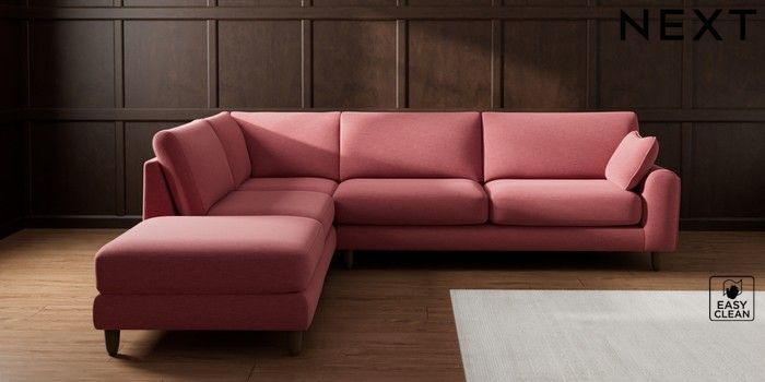 7.2.10 Campbell Large Open End Corner Chaise - Left Hand Fine Chenille Easy Clean Mid Pink High Leg - Mid | Made Click here to use our website with more accessibility support, for example screen readers