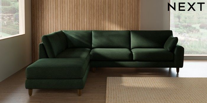 7.2.10 Campbell Large Open End Corner Chaise - Left Hand Luxe Chenille Dark Green High Leg - Mid | Made Click here to use our website with more accessibility support, for example screen readers