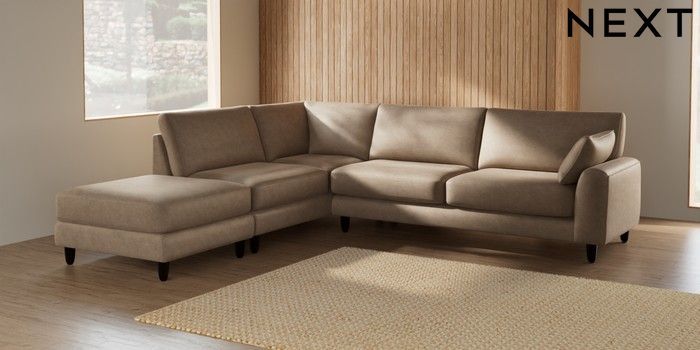 7.2.10 Campbell Large Open End Corner Chaise - Left Hand Luxe Chenille Mid Camel Beige High Leg - Dark | Made Click here to use our website with more accessibility support, for example screen readers