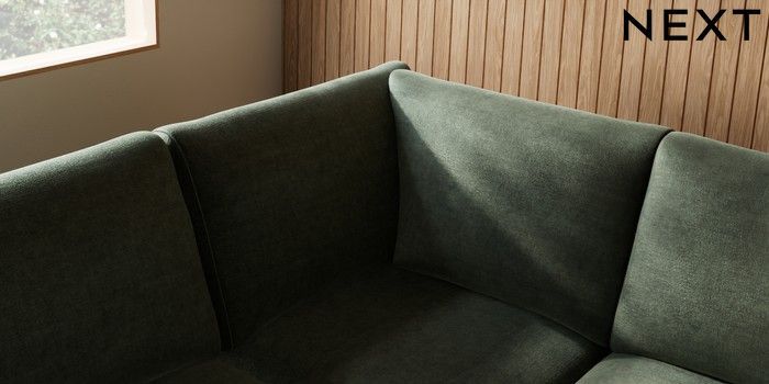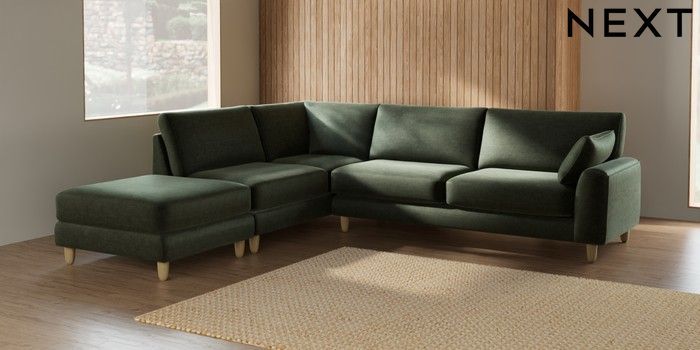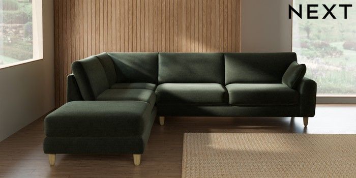 7.2.10 Campbell Large Open End Corner Chaise - Left Hand Luxe Chenille Mid Green High Leg - Light | Made Click here to use our website with more accessibility support, for example screen readers