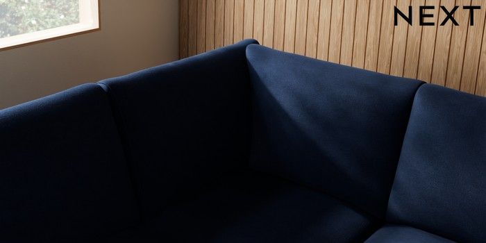 7.2.10 Campbell Large Open End Corner Chaise - Left Hand Luxe Chenille Navy Blue High Leg - Dark | Made Click here to use our website with more accessibility support, for example screen readers