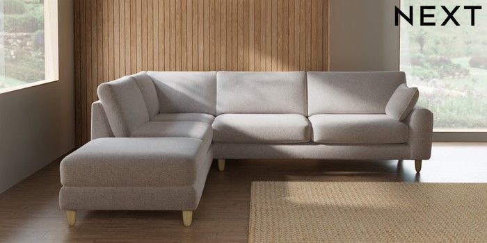 7.2.10 Campbell Large Open End Corner Chaise - Left Hand Multi Weave Oyster High Leg - Light | Made Click here to use our website with more accessibility support, for example screen readers