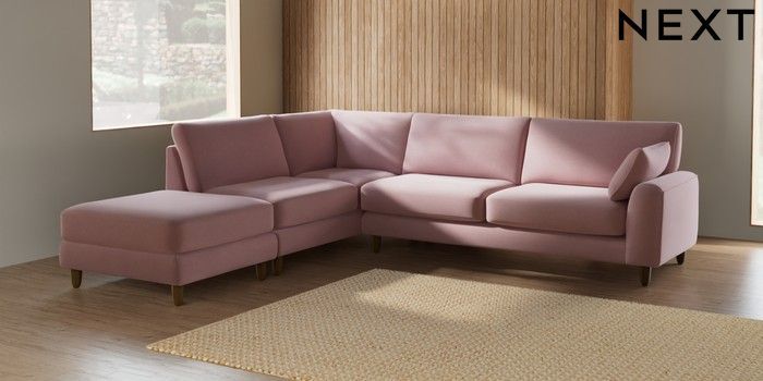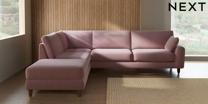 7.2.10 Campbell Large Open End Corner Chaise - Left Hand Natural Mix Light Rose Pink High Leg - Mid | Made Click here to use our website with more accessibility support, for example screen readers