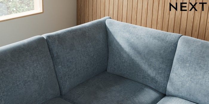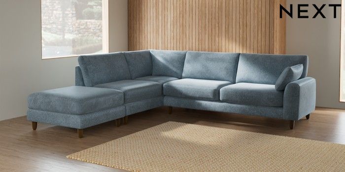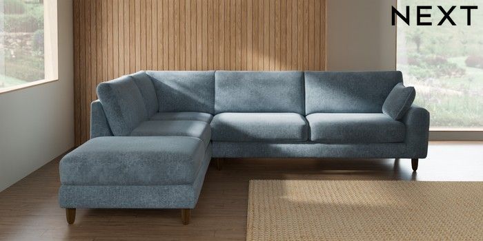 7.2.10 Campbell Large Open End Corner Chaise - Left Hand Plush Chenille Light Blue High Leg - Mid | Made Click here to use our website with more accessibility support, for example screen readers