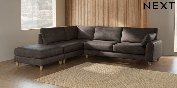 7.2.10 Campbell Large Open End Corner Chaise - Left Hand Plush Chenille Mink Brown High Leg - Light | Made Click here to use our website with more accessibility support, for example screen readers