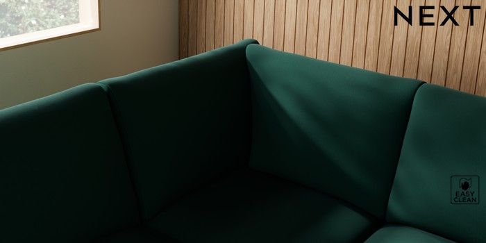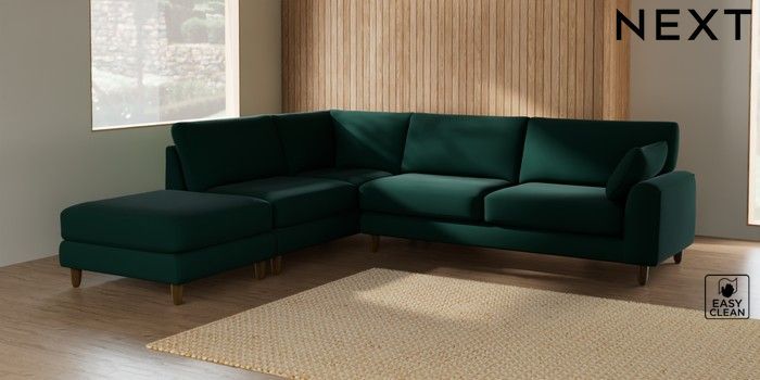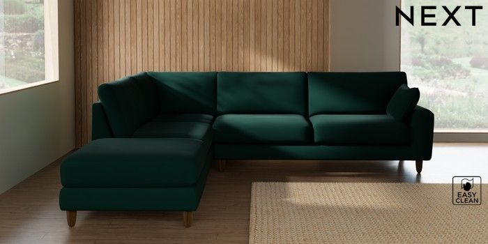 7.2.10 Campbell Large Open End Corner Chaise - Left Hand Plush Velvet Easy Clean Bottle Green High Leg - Mid | Made Click here to use our website with more accessibility support, for example screen readers