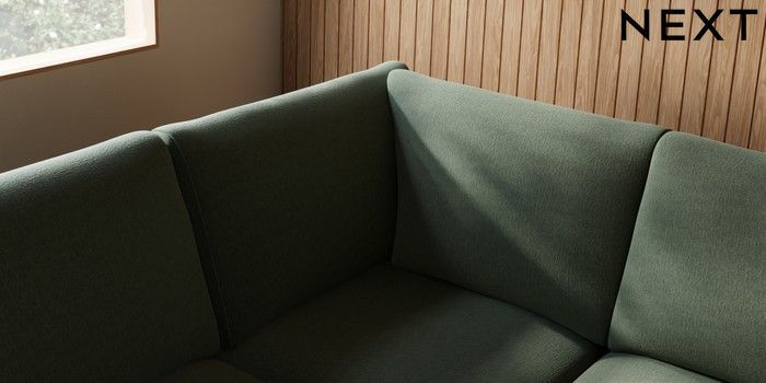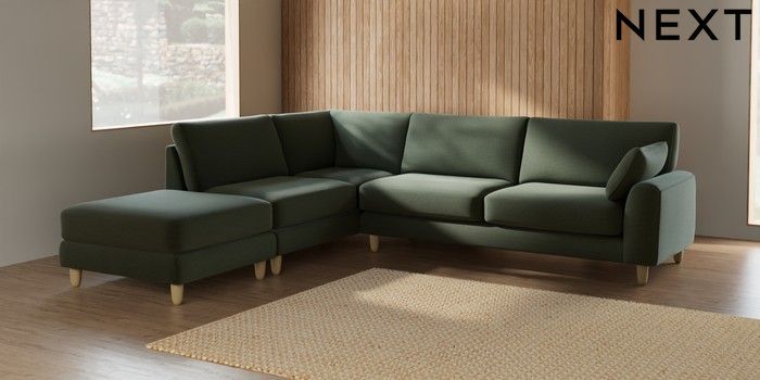 7.2.10 Campbell Large Open End Corner Chaise - Left Hand Relaxed Linen Look Dark Green High Leg - Light | Made Click here to use our website with more accessibility support, for example screen readers