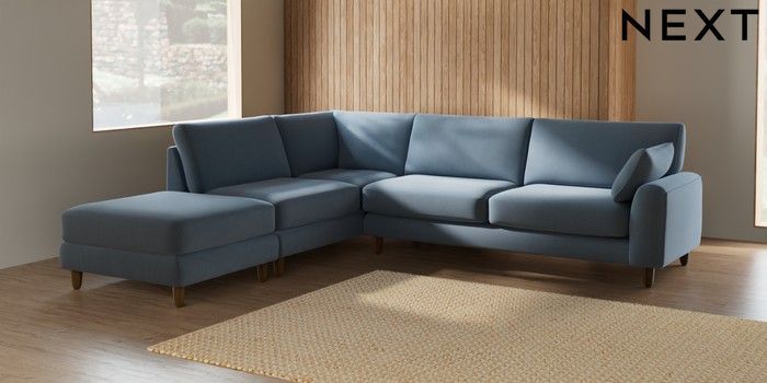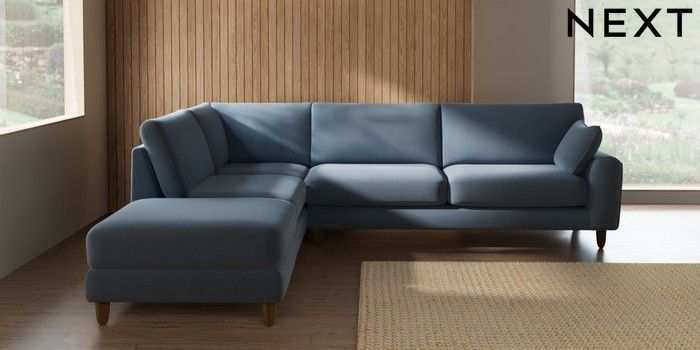 7.2.10 Campbell Large Open End Corner Chaise - Left Hand Relaxed Linen Look Mid Blue High Leg - Mid | Made Click here to use our website with more accessibility support, for example screen readers