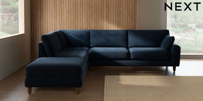 7.2.10 Campbell Large Open End Corner Chaise - Left Hand Ripple Chenille Dark Blue High Leg - Mid | Made Click here to use our website with more accessibility support, for example screen readers