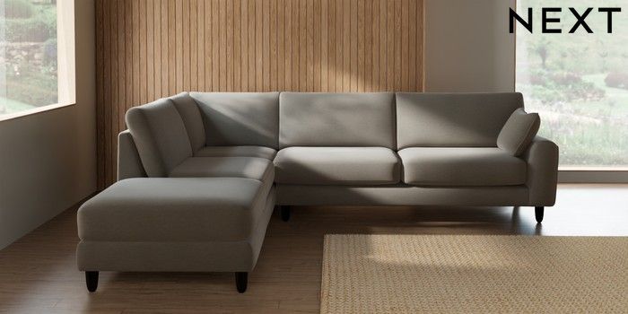 7.2.10 Campbell Large Open End Corner Chaise - Left Hand Ripple Chenille Light Natural High Leg - Dark | Made Click here to use our website with more accessibility support, for example screen readers