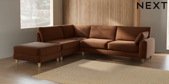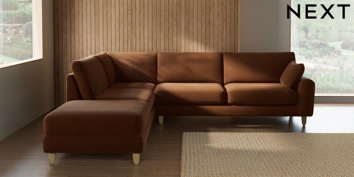 7.2.10 Campbell Large Open End Corner Chaise - Left Hand Ripple Chenille Mid Rust Brown High Leg - Light | Made Click here to use our website with more accessibility support, for example screen readers