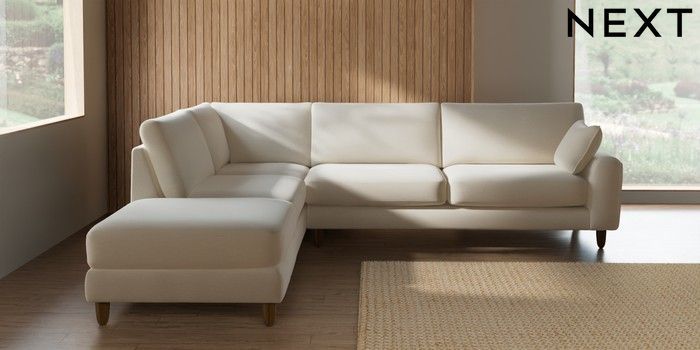 7.2.10 Campbell Large Open End Corner Chaise - Left Hand Ripple Chenille Oyster High Leg - Mid | Made Click here to use our website with more accessibility support, for example screen readers