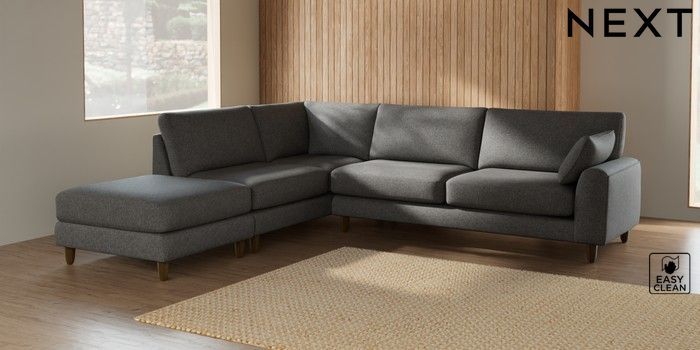 7.2.10 Campbell Large Open End Corner Chaise - Left Hand Tweedy Blend Easy Clean Dark Grey High Leg - Mid | Made Click here to use our website with more accessibility support, for example screen readers