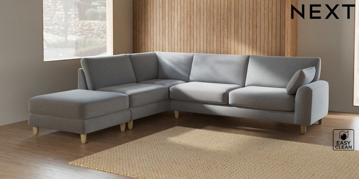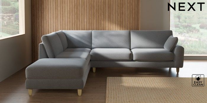 7.2.10 Campbell Large Open End Corner Chaise - Left Hand Tweedy Blend Easy Clean Light Silver Grey High Leg - Light | Made Click here to use our website with more accessibility support, for example screen readers