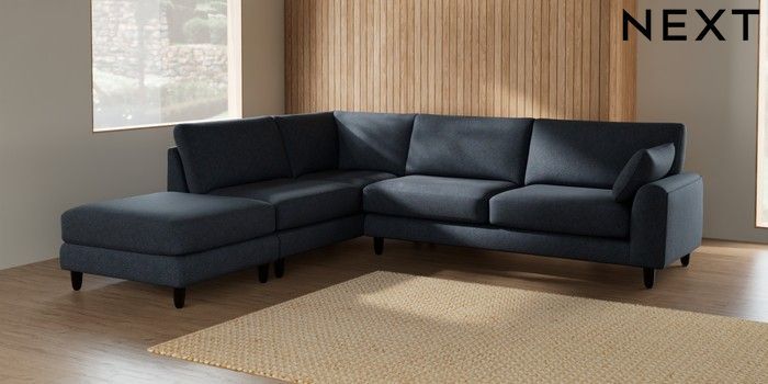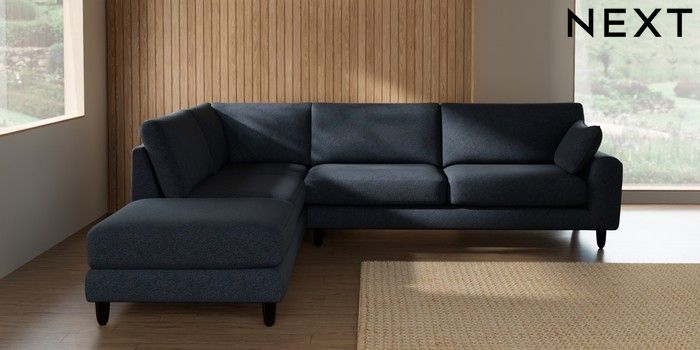7.2.10 Campbell Large Open End Corner Chaise - Left Hand Tweedy Chenille Navy Blue High Leg - Dark | Made Click here to use our website with more accessibility support, for example screen readers