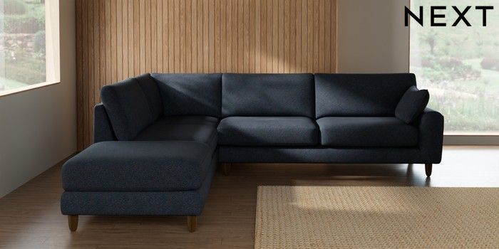 7.2.10 Campbell Large Open End Corner Chaise - Left Hand Tweedy Chenille Navy Blue High Leg - Mid | Made Click here to use our website with more accessibility support, for example screen readers
