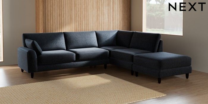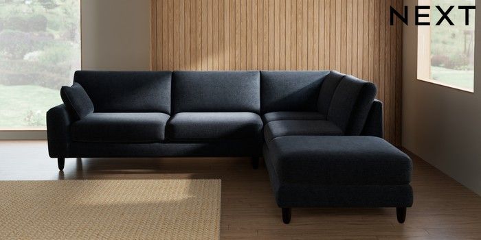 7.2.10 Campbell Large Open End Corner Chaise - Right Hand Boucle Chenille Dark Slate Blue High Leg - Dark | Made Click here to use our website with more accessibility support, for example screen readers