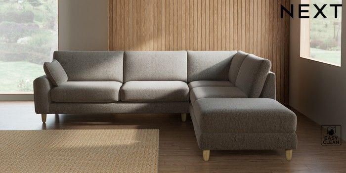 7.2.10 Campbell Large Open End Corner Chaise - Right Hand Chunky Boucle Easy Clean Dove High Leg - Light | Made Click here to use our website with more accessibility support, for example screen readers