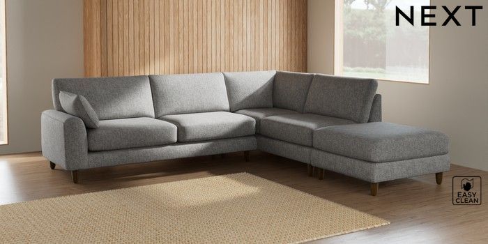 7.2.10 Campbell Large Open End Corner Chaise - Right Hand Chunky Boucle Easy Clean Light Grey High Leg - Mid | Made Click here to use our website with more accessibility support, for example screen readers