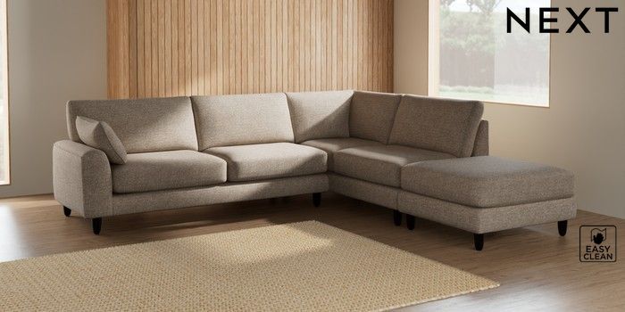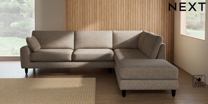 7.2.10 Campbell Large Open End Corner Chaise - Right Hand Chunky Boucle Easy Clean Mid Natural High Leg - Dark | Made Click here to use our website with more accessibility support, for example screen readers
